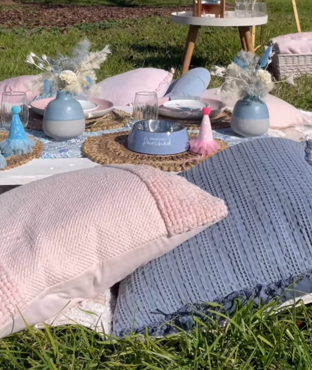 Fun and Hassle-free. We can’t say enough about pawtying at Dogtown Bakery. Its a celebration combining gorgeous decorations with the convenience and safety to let your dogs roam! We’re talking about pop-up picnics for indoors or any theme that you can dream of— we have packages for two up to 18+ dogs, boho, beach style, luxury or laid back, with a full service for dogs and their humans.